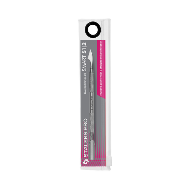 - La parte de trabajo "empujador redondeado con extremo recto" está diseñada para levantar y empujar la cutícula hacia atrás.